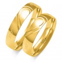 Obrączki o wyoblonym profilu , w całości wykonane z żółtego , polerowanego złota. Powierzchnia obrączki ozdobiona jest frezowanym paskiem , tworzącym półserce. Połączenie obrączek uwidacznia kształt całego serca.Szerokość 4,5mm. Waga 6,50g. - 7,20g.