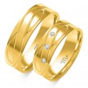 Obrączki wypukłe , w całości wykonane z żółtego , polerowanego złota. W wersji damskiej na powierzchni obrączki umieszczono dwa ukośnie biegnące pasy w których zakuto kamyczki. Szerokość 6mm.Waga 7,80g. - 8,50g.