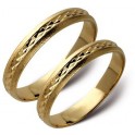 Obrączki wykonane w całości z żółtego złota . Przez mocno satynowaną powierzchnię modelu przebiega błyszczacy, frezowany wzór. Szerokość 4 mm. Waga 7,1 g.-7,6 g.