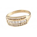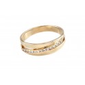 Pierścionek złoty wykonany z żółtego złota próby 585,ozdobiony biegnącym ukośnie wąskim pasem cyrkonii.Waga 2,67g.Rozmiar13