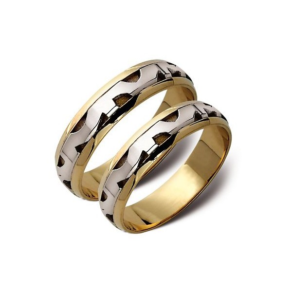 Obrączki ślubne półokrągłe wykonane z żółtego i białego złota próby 585.