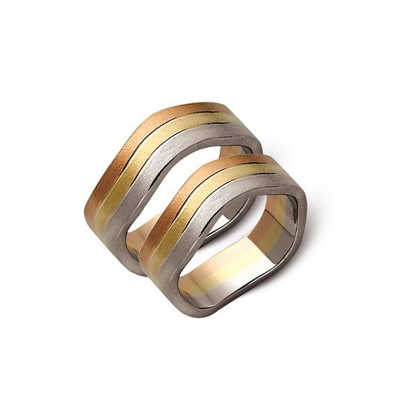 Obrączki ślubne wykonane z żółtego, białego i czerwonego złota,