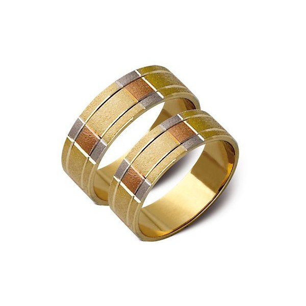 Obrączki ślubne płaskie wykonane z żółtego, białego