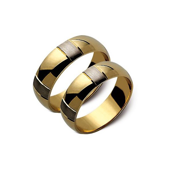 biegnącymi pasami białego satynowego złota. Szerokość 6mm. Waga 9,6-10,4g.