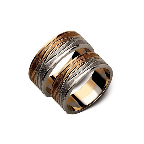 Obrączki ślubne płaskie wykonane z białego i czerwonego